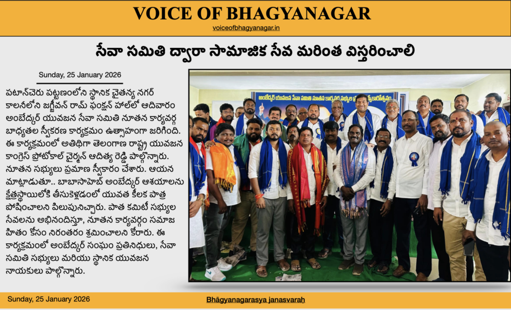 Addressing the gathering, Aditya Reddy urged the youth to play a vital role in taking the ideals and vision of Babasaheb Dr. B.R. Ambedkar to the grassroots level. He praised the contributions and services of the previous committee members and encouraged the new executive body to work continuously and selflessly for the welfare of society. Representatives of various Ambedkar associations, members of the Seva Samiti, and local youth leaders participated in the programme.